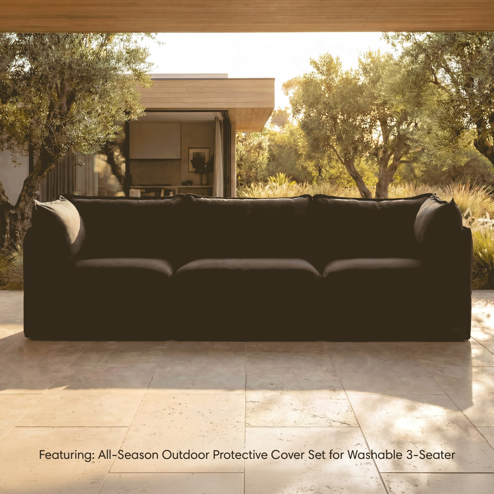 All-Season Outdoor Protective Cover Set for Washable 3-Seater + Bench Ottoman