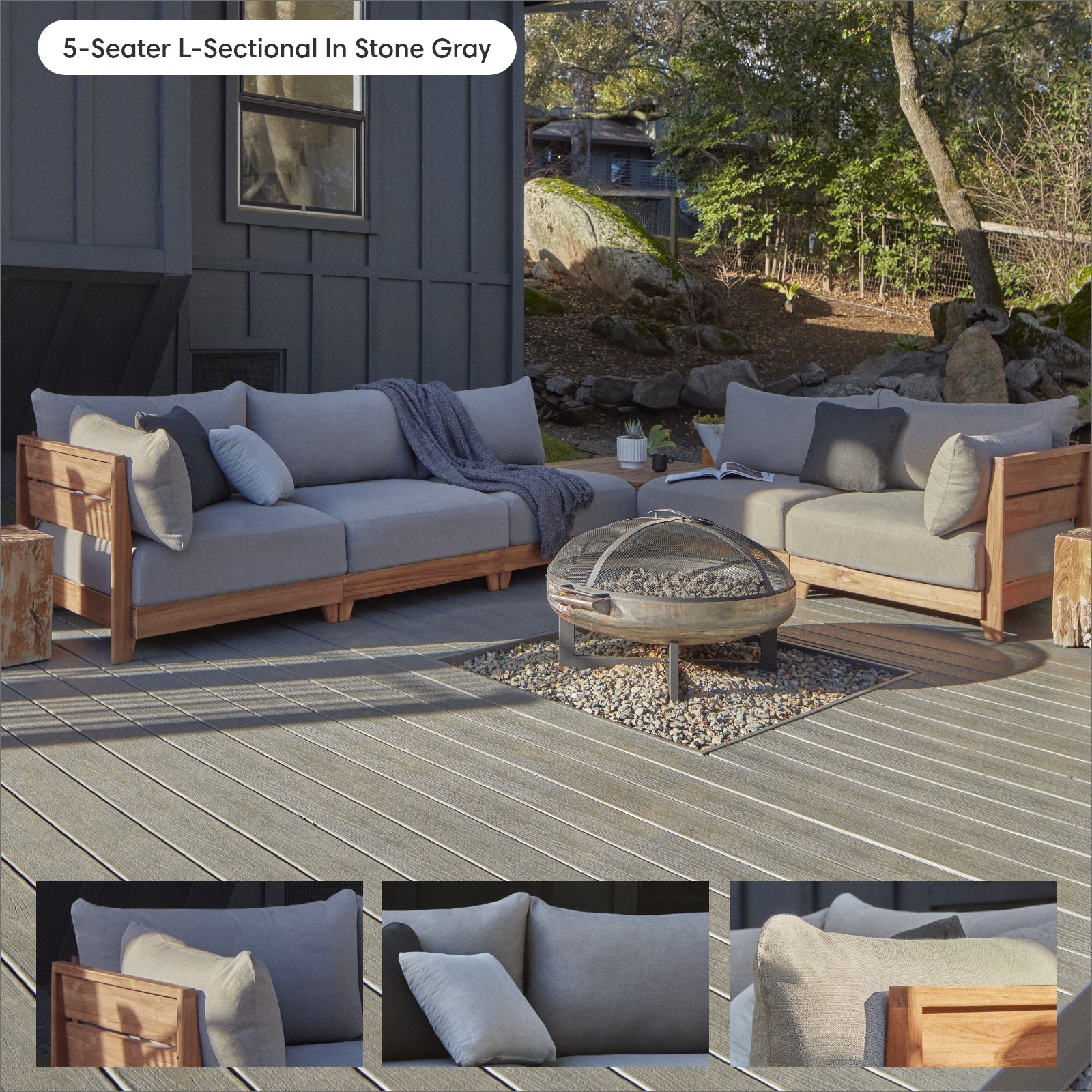 Dwell™ Modular Teak Outdoor 4-Seater Sofa Sectional | Classic Canvas in Stone Gray