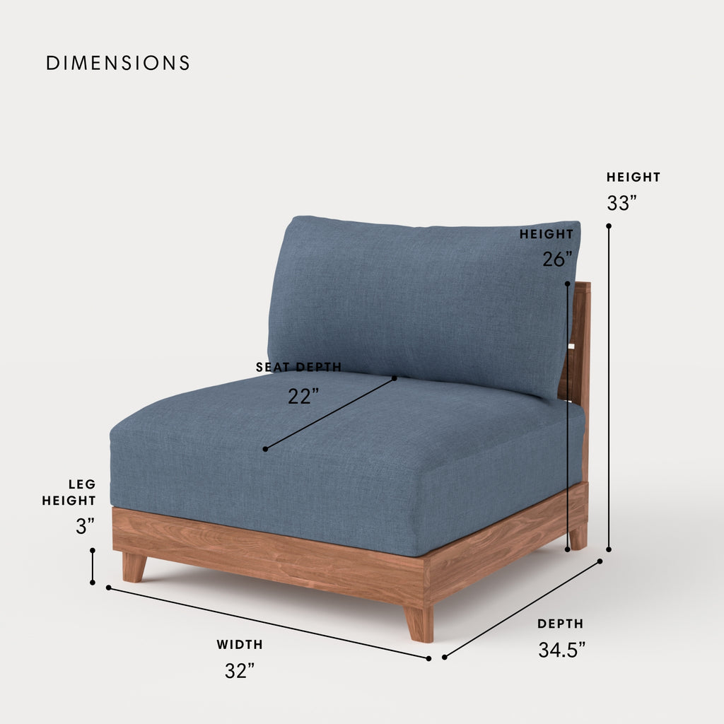 Dwell™ Modular Teak Outdoor Modular Unit - Armless Chair | Classic Canvas in Ocean