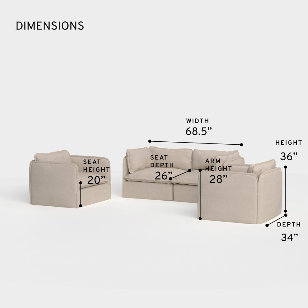 OVERALL: 68.5” W x 34” D x 36” H