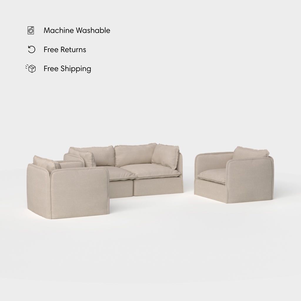 Modular Outdoor Washable 2-Seater Sofa + Armchair Set | Classic Canvas in Sand