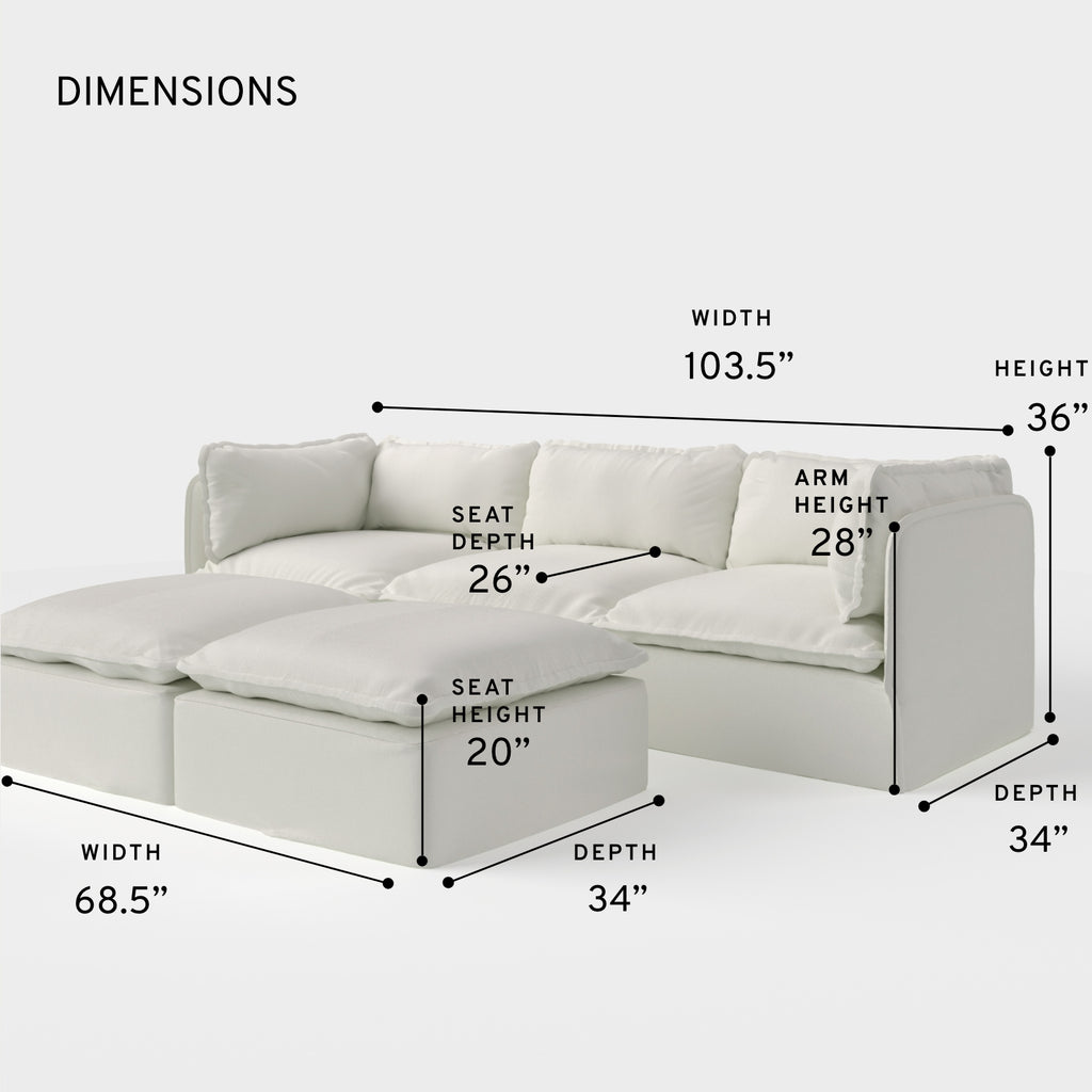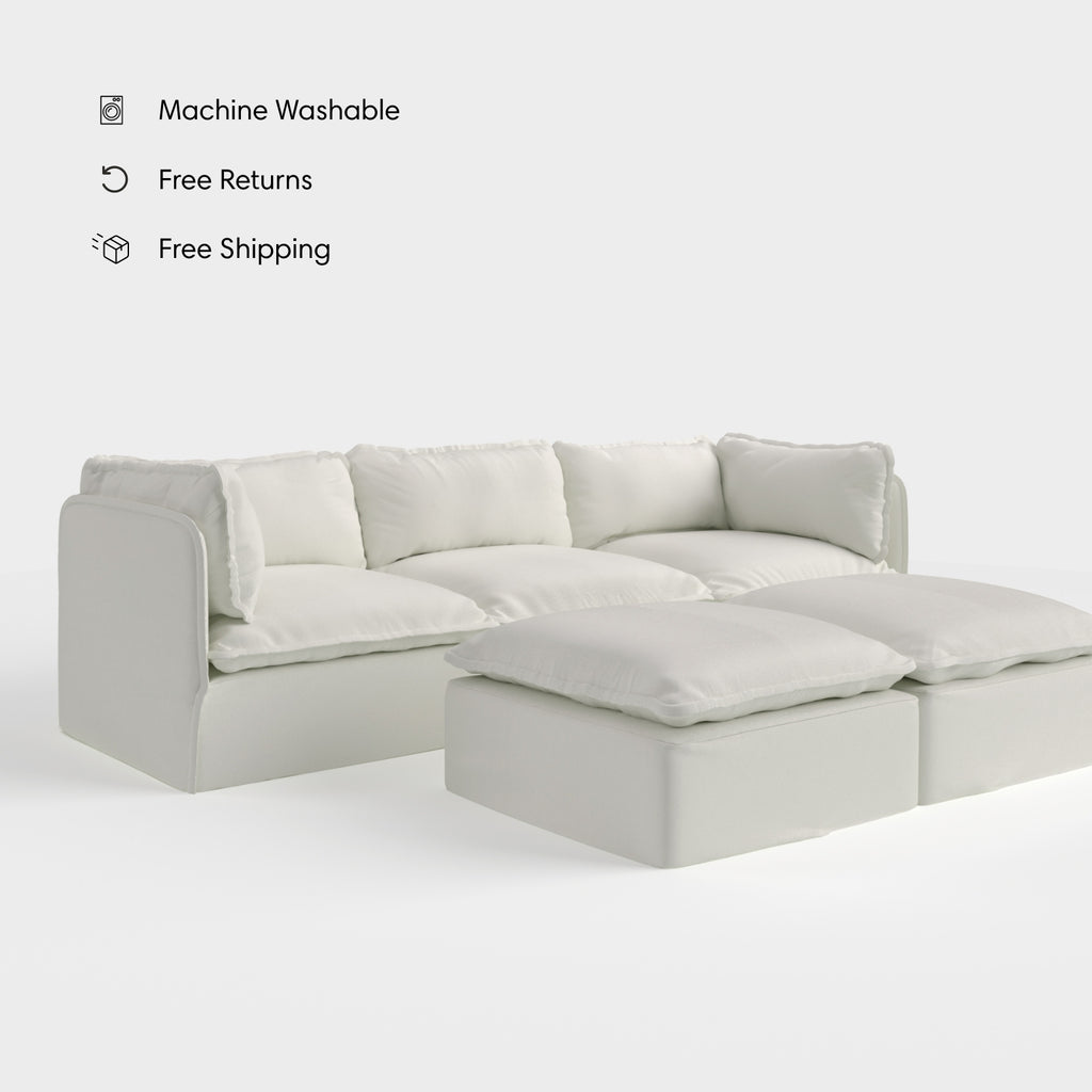 Modular Outdoor Washable 3-Seater + Bench Ottoman | Classic Canvas in Cloud