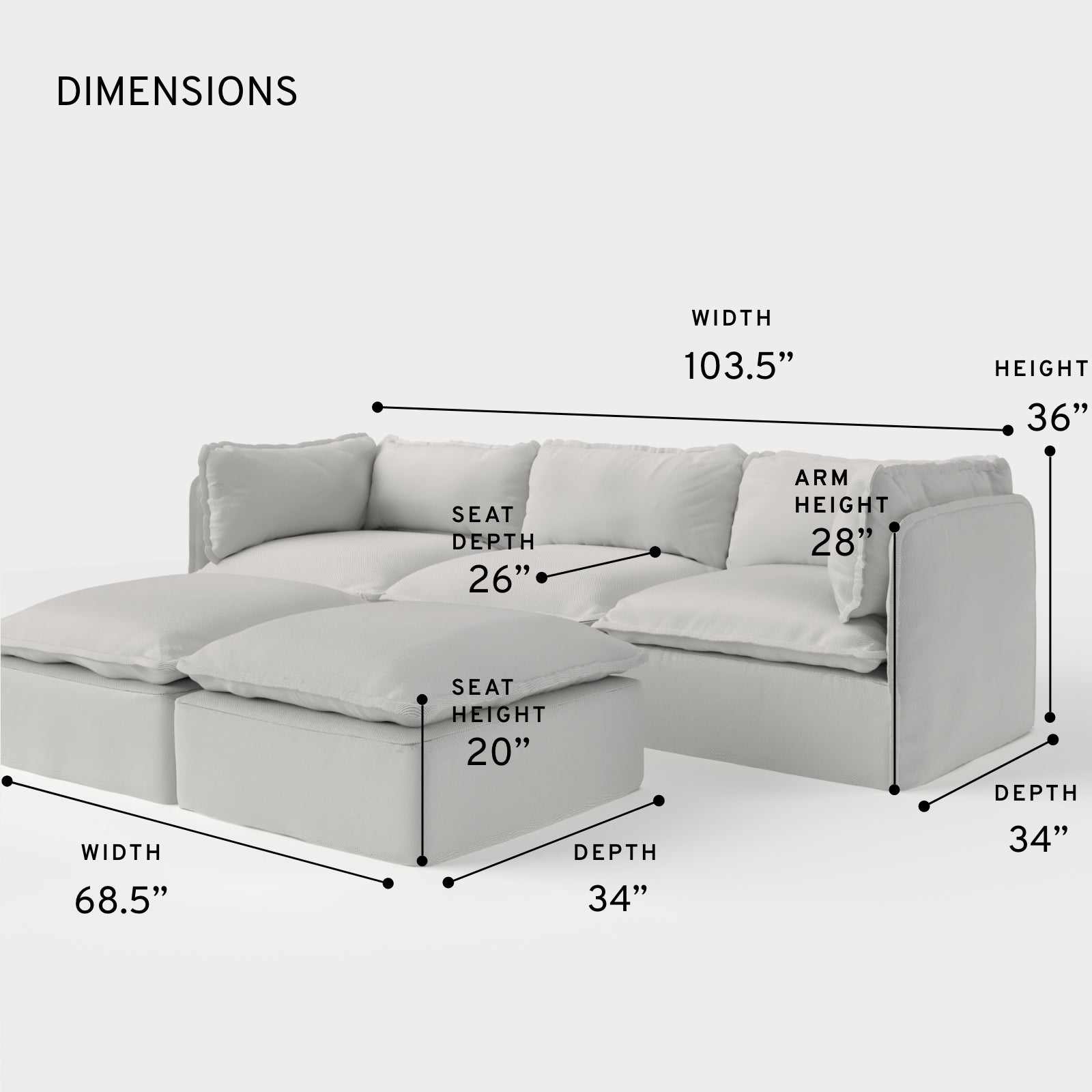 OVERALL: 103.5” W x 34” D x 36” H