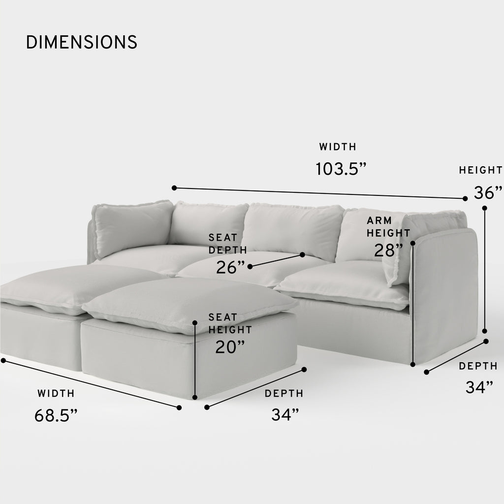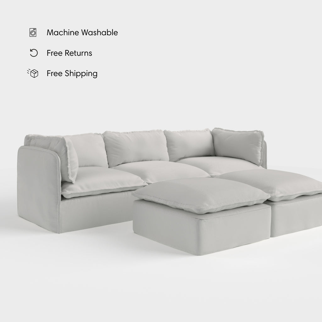 Modular Outdoor Washable 3-Seater + Bench Ottoman | Nano Slubweave in Mist