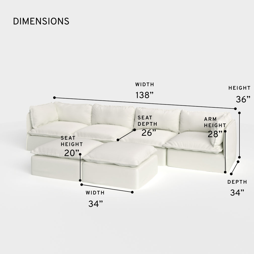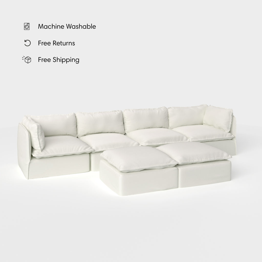 Modular Outdoor Washable 4-Seater + Bench Ottoman | Classic Canvas in Cloud