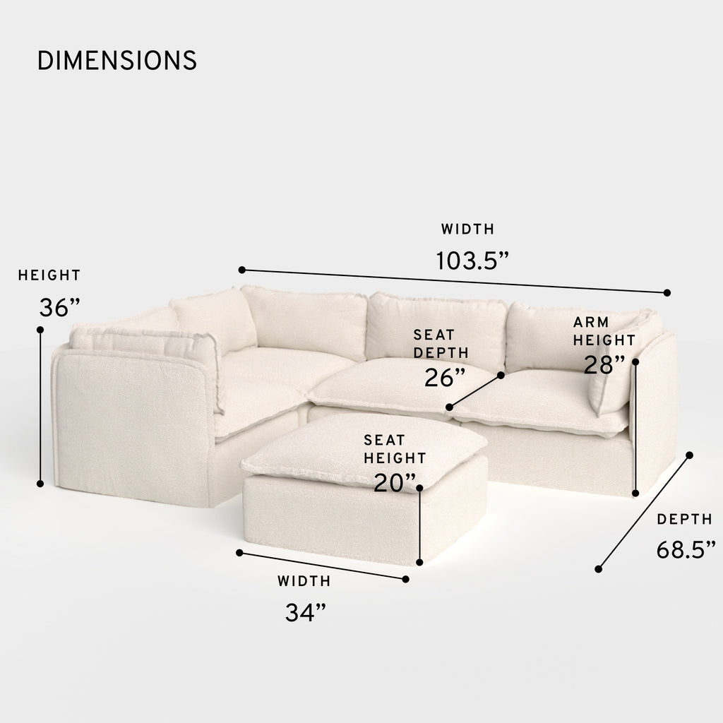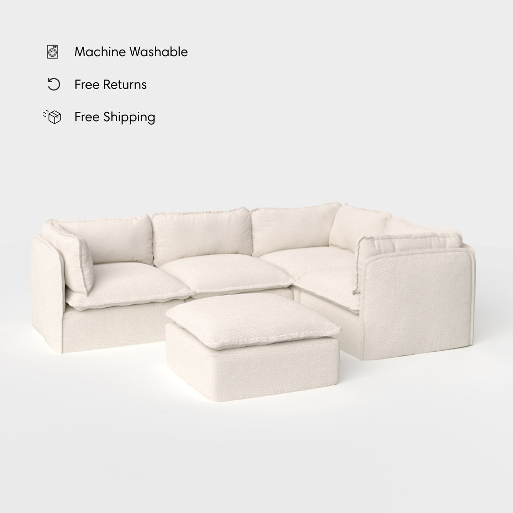 Modular Outdoor Washable 4-Seater Corner Sectional + Ottoman | Alfresco Boucle in Creme