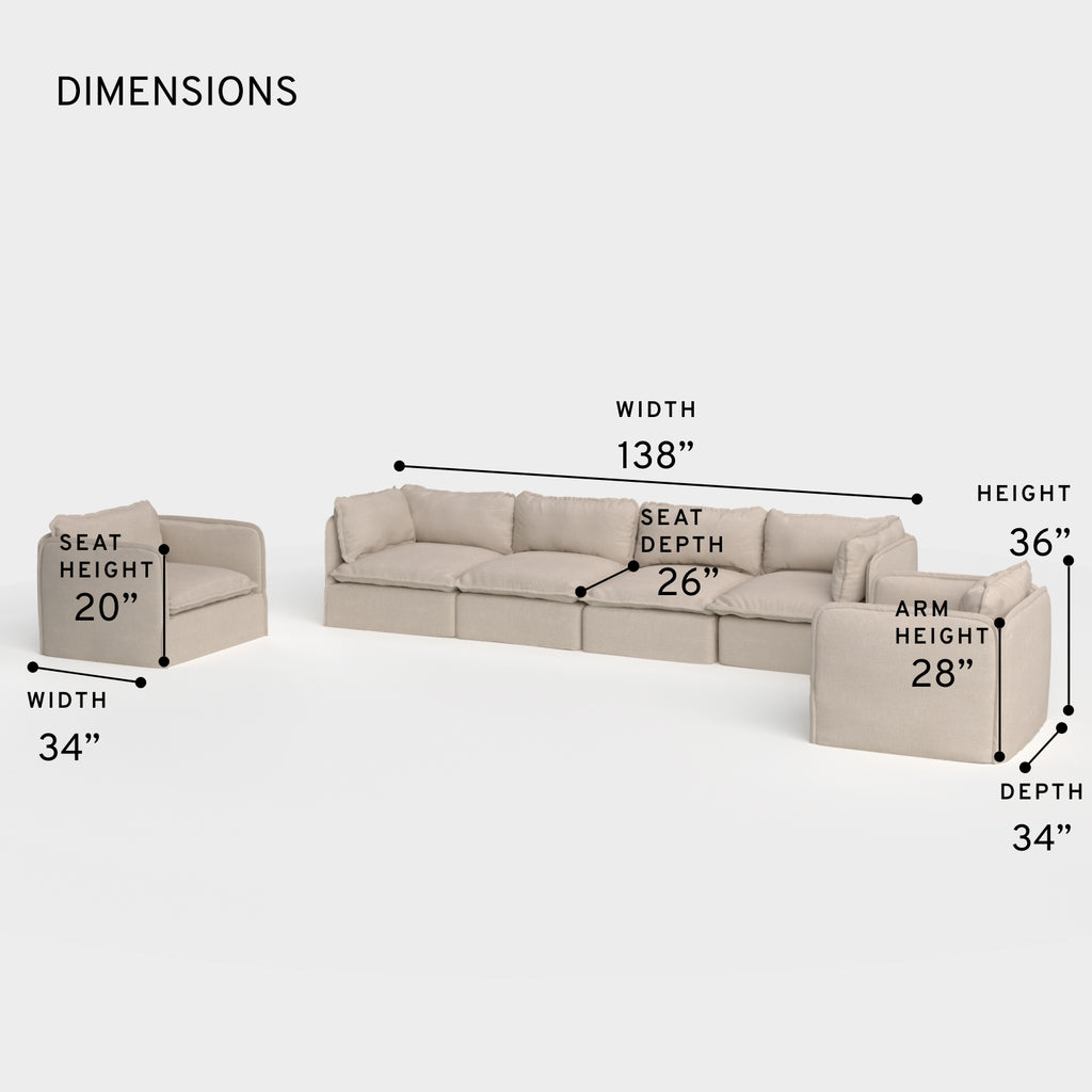 Modular Outdoor Washable 4-Seater Sofa + Armchair Set | Classic Canvas in Sand