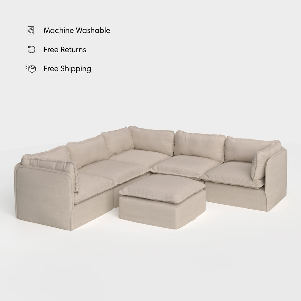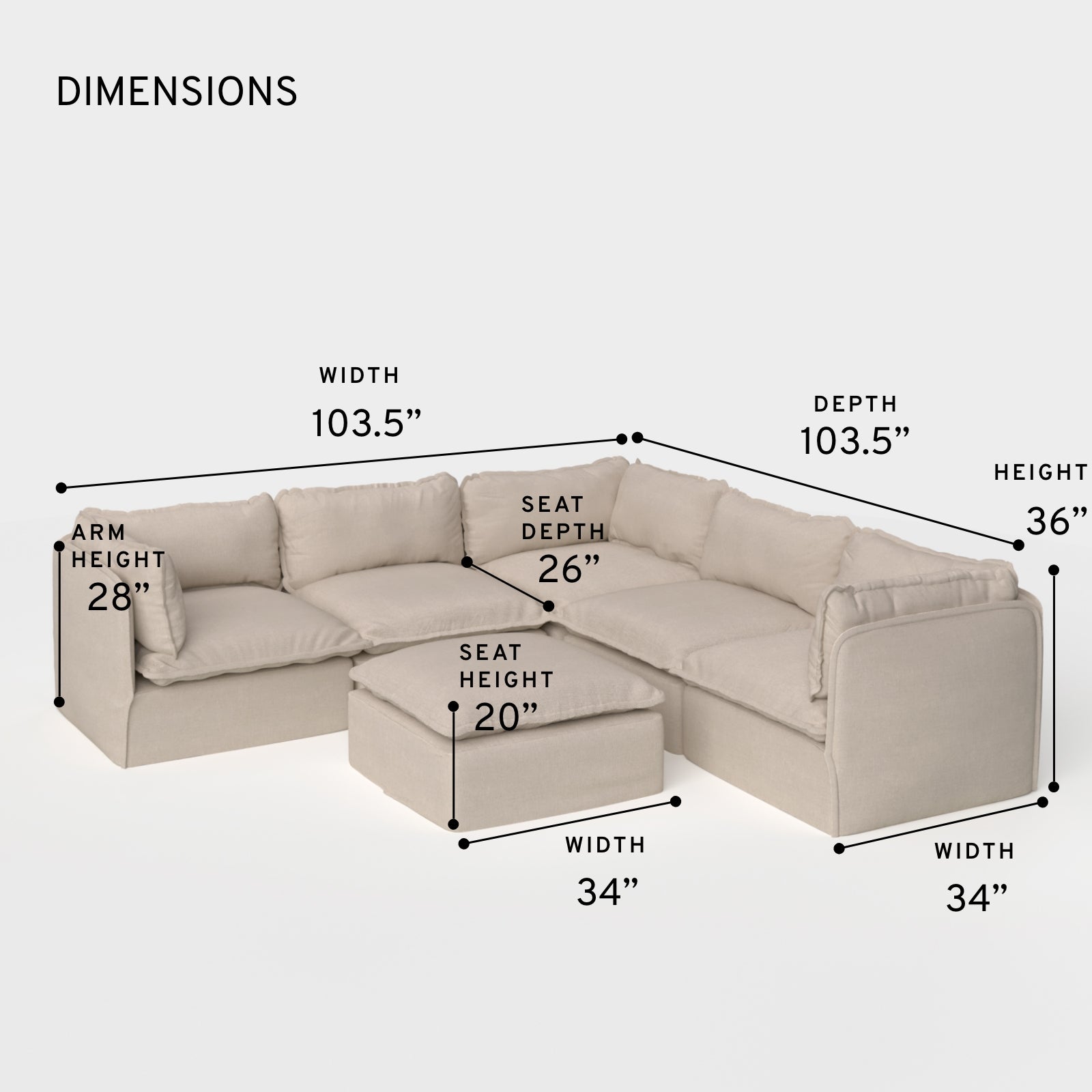 Modular Outdoor Washable 5-Seater Corner Sectional + Ottoman | Classic Canvas in Sand