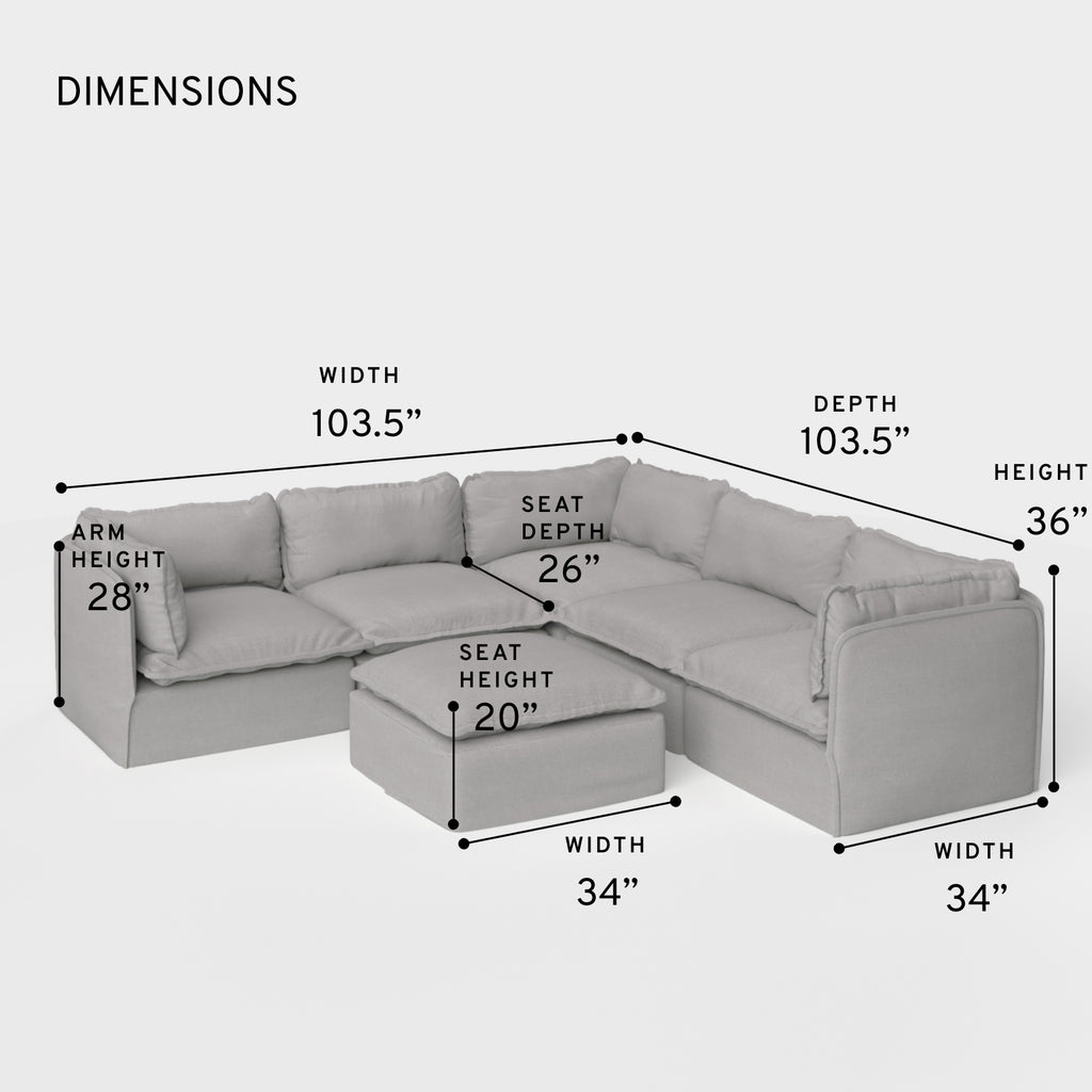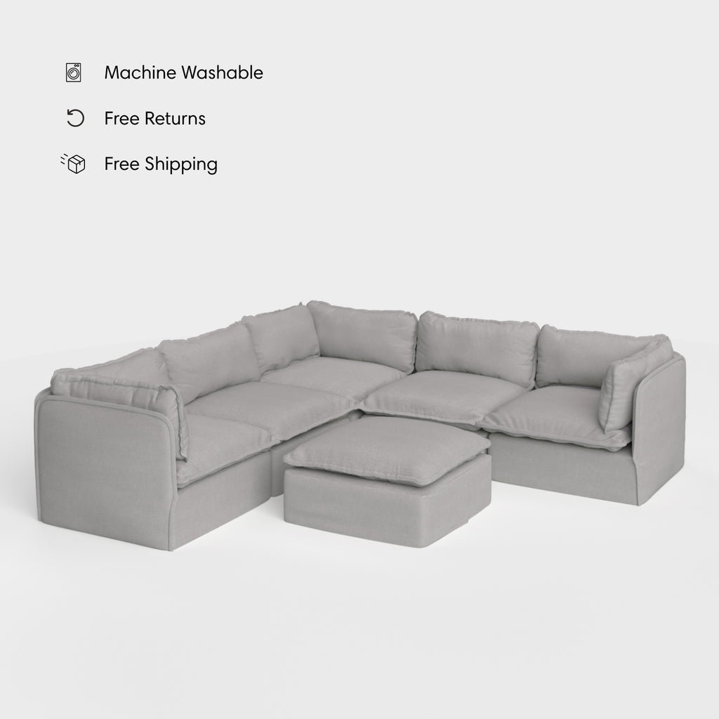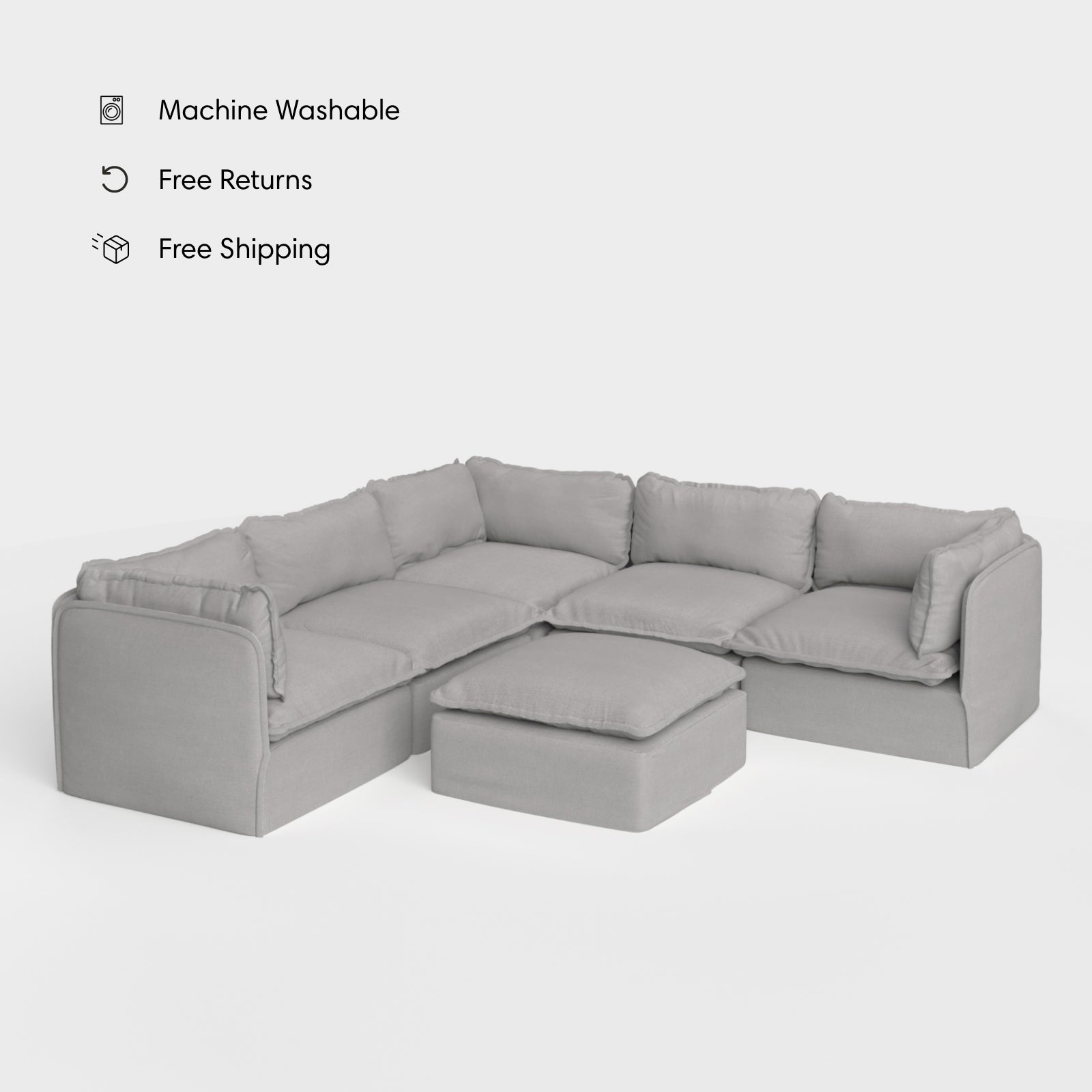 Modular Outdoor Washable 5-Seater Corner Sectional + Ottoman | Classic Canvas in Stone Gray