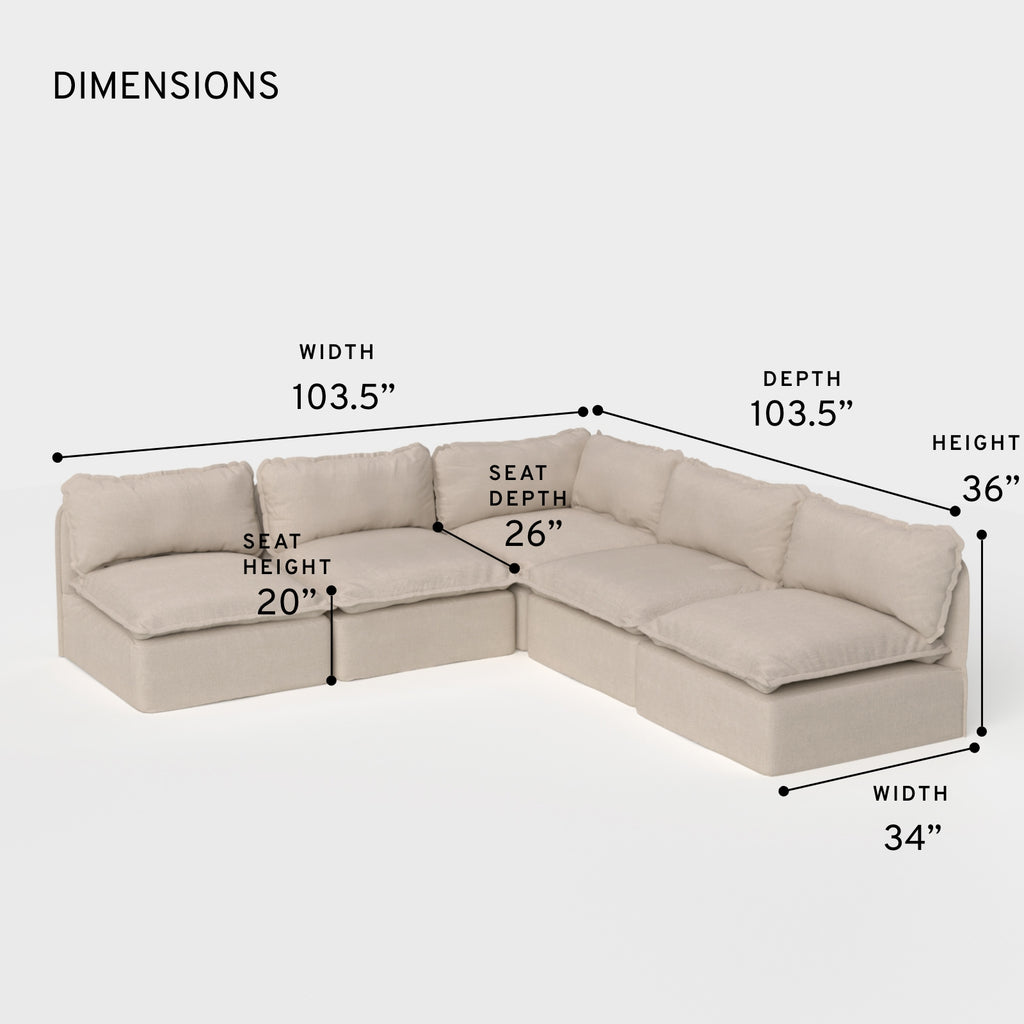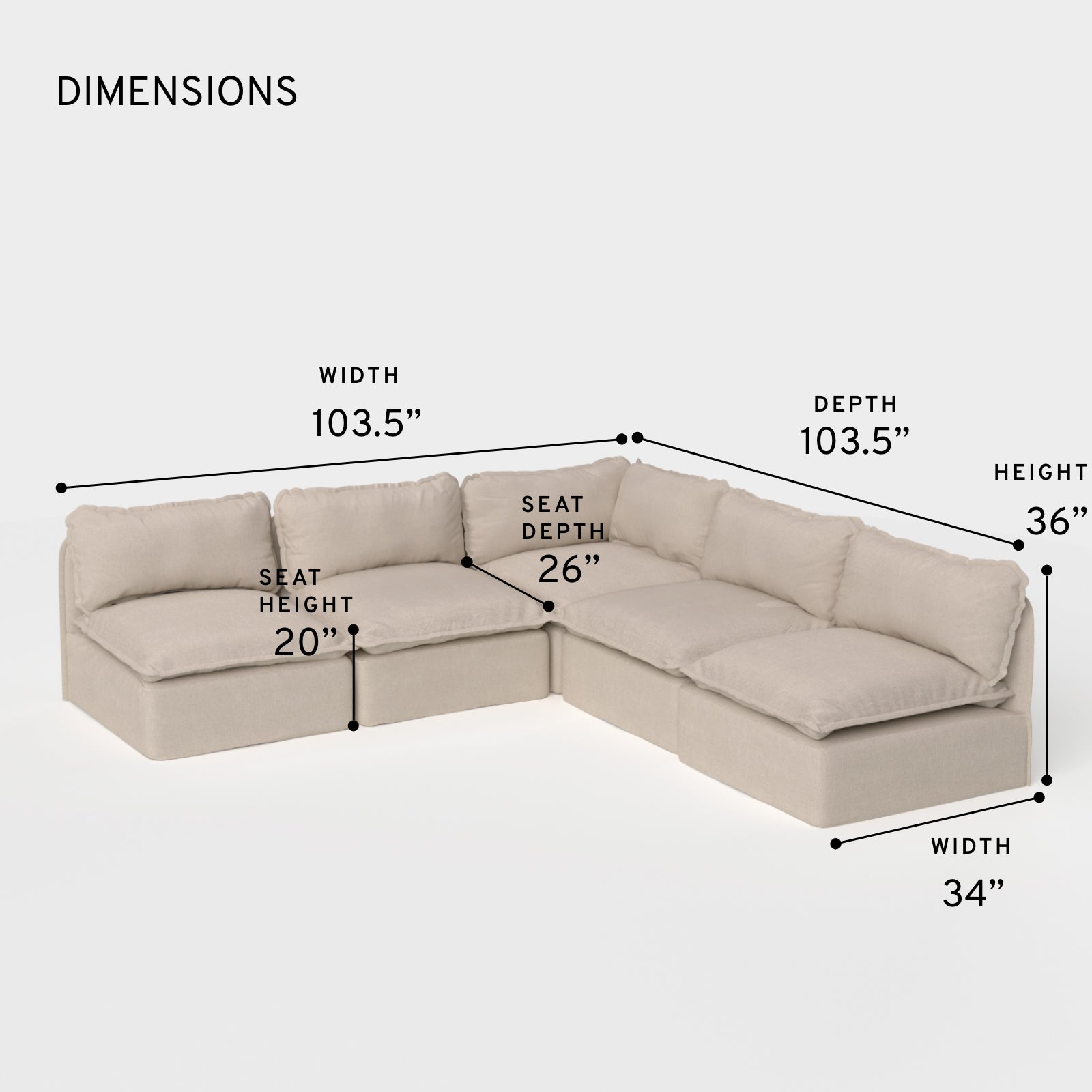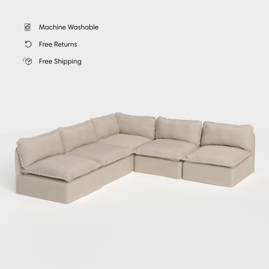 Modular Outdoor Washable 5-Seater Open-Ends Corner Sectional | Classic Canvas in Sand