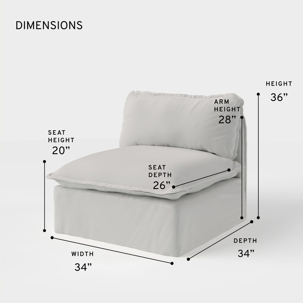 Modular Outdoor Washable Armless Chair | Nano Slubweave in Mist
