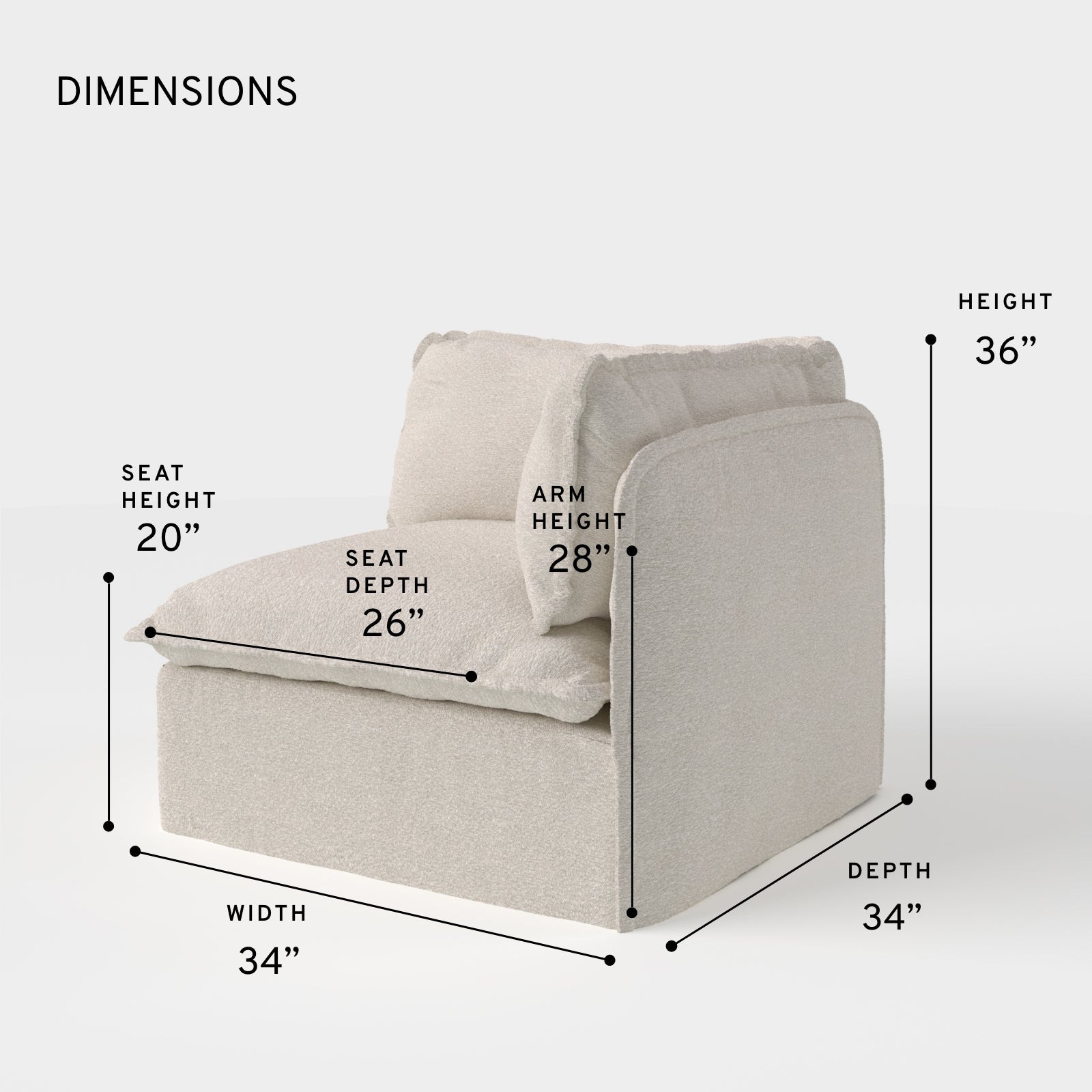 EACH SEAT: 26” D x 20” H