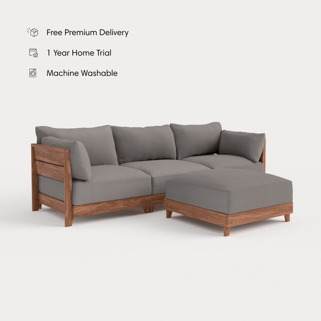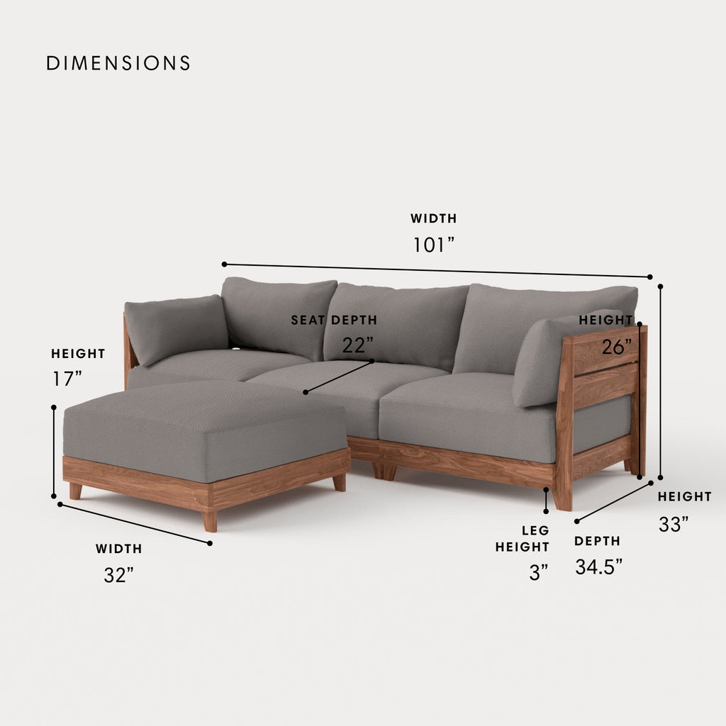 Modular Teak Outdoor Sofa + Ottoman | Nano Slubweave in Haze Gray